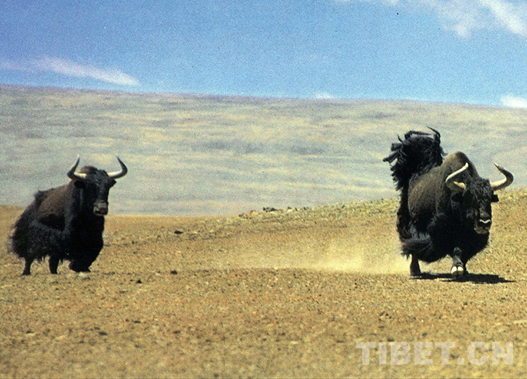 性情強(qiáng)悍的野牦牛傳宗接代的方式也是驚心動(dòng)魄的。每年的七八月份是野牦牛的發(fā)情交配季節(jié)。雄性野牦牛相遇,必然展開一場(chǎng)激烈的角斗,勝利者獲得對(duì)雌性野牦牛的占有權(quán),戰(zhàn)敗者只能灰溜溜地落荒而逃。