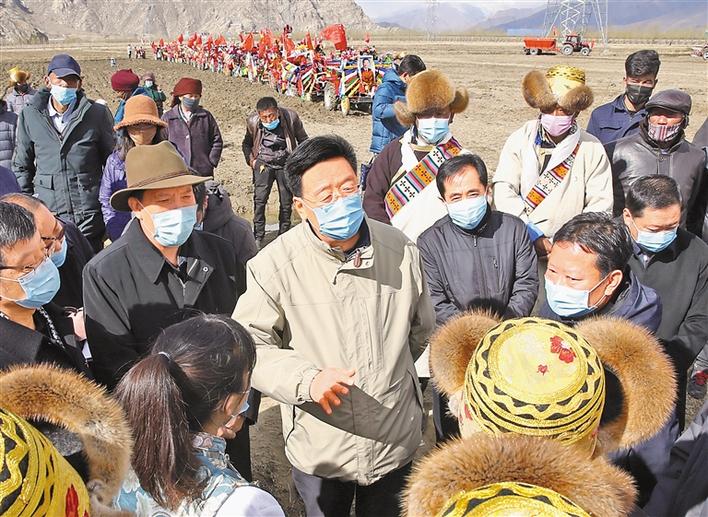 一年之計在于春。16日上午,西藏自治區(qū)黨委書記吳英杰和區(qū)黨委副書記、自治區(qū)人大常委會主任洛桑江村專程來到拉薩市曲水縣田間地頭、農(nóng)牧系統(tǒng)單位,與當?shù)馗刹咳罕娬勌厣a(chǎn)業(yè)經(jīng)、算增收致富賬,實地調(diào)研春耕春播工作情況。吳英杰強調(diào),要戰(zhàn)“疫”不誤農(nóng),始終堅持以人民為中心的發(fā)展思想,找準農(nóng)牧民增收致富的“切入點”,深入推進農(nóng)牧業(yè)供給側結構性改革,確保農(nóng)牧民群眾不離鄉(xiāng)不離土就能依靠產(chǎn)業(yè)發(fā)展增收致富。