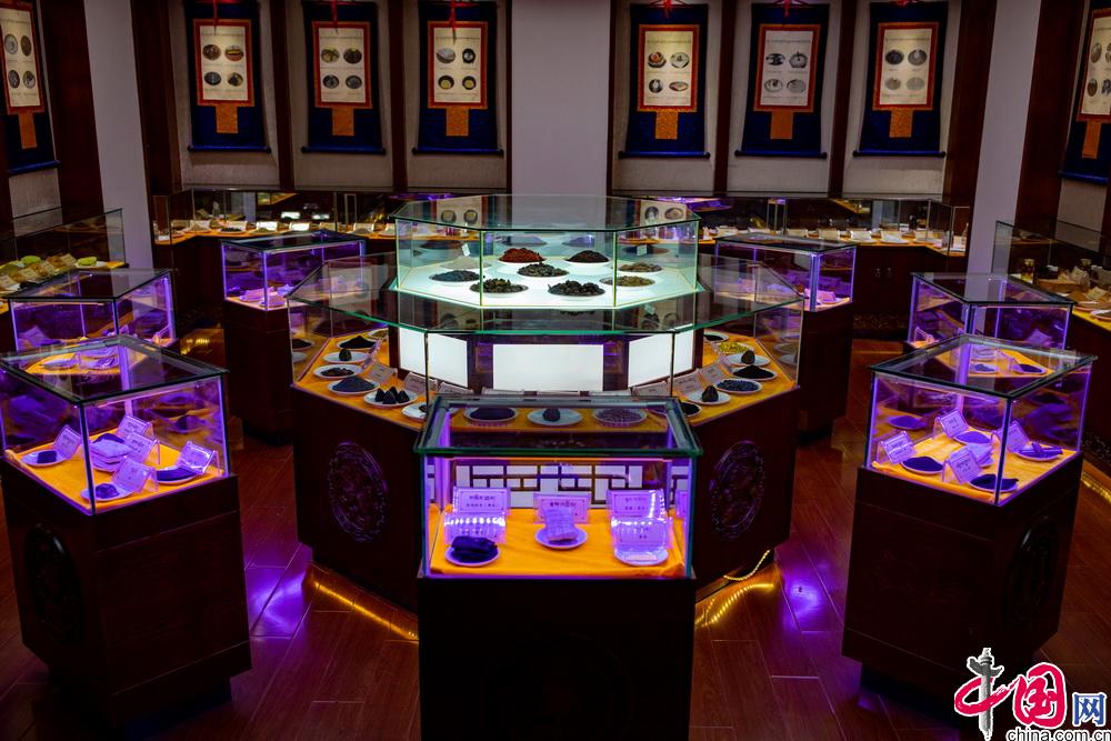 西藏藏醫(yī)藥大學(xué)保護(hù)傳統(tǒng)文化方面一直做著不懈的努力,其中“藏醫(yī)水銀提煉法”、“藏藥仁青常覺(jué)配伍技藝”、“藏醫(yī)外治療法”等項(xiàng)目被國(guó)務(wù)院批準(zhǔn)為非物質(zhì)文化保護(hù)遺產(chǎn)?!端牟酷t(yī)典·后續(xù)醫(yī)典部注釋》入選第一批《國(guó)家珍貴古籍名錄》。2018年,“索瓦日巴——藏藥浴法”被列入聯(lián)合國(guó)人類非物質(zhì)文化遺產(chǎn)代表作名錄。同時(shí)學(xué)校還擁有國(guó)家非物質(zhì)文化遺產(chǎn)保護(hù)傳承人8名。圖為學(xué)校內(nèi)展示的藏藥提煉方面所使用的原材料。中國(guó)網(wǎng)記者 鄭亮攝