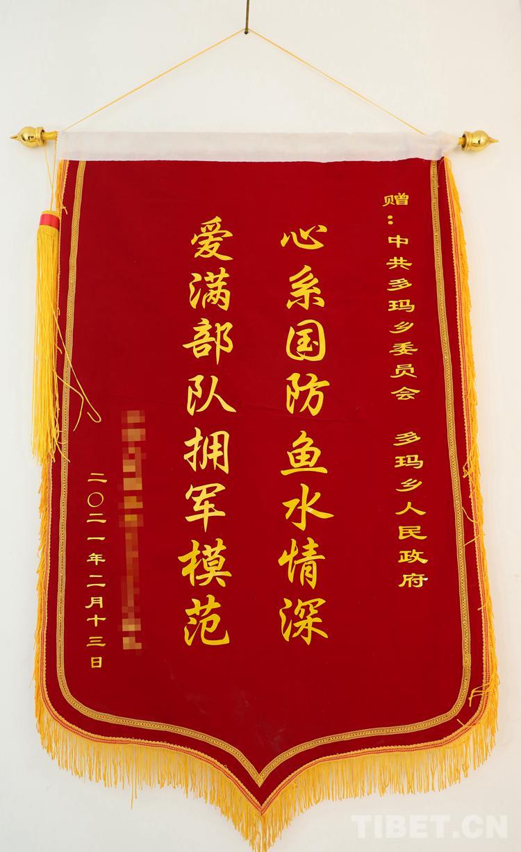 圖為駐地部隊(duì)贈送的錦旗 攝影:賈華加