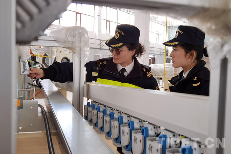 圖為拉薩海關(guān)派員對(duì)一批德國進(jìn)口洗滌設(shè)備開展目的地查驗(yàn)