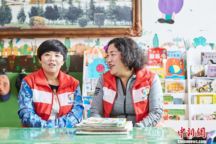 索南尖措園長(zhǎng)(右)雖然沒有讀過(guò)書,但他明白,這個(gè)年齡的孩子非常需要學(xué)前教育。