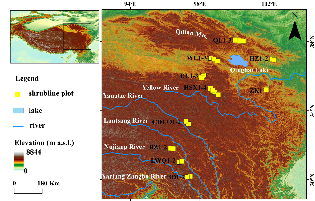 文章通訊作者、中科院青藏高原所研究員梁爾源介紹,高山灌木線是指灌叢分布的海拔邊界上限,被認(rèn)為是探索高寒生態(tài)系統(tǒng)對全球變化響應(yīng)與適應(yīng)的天然實驗室和全球變暖的“預(yù)警線”。