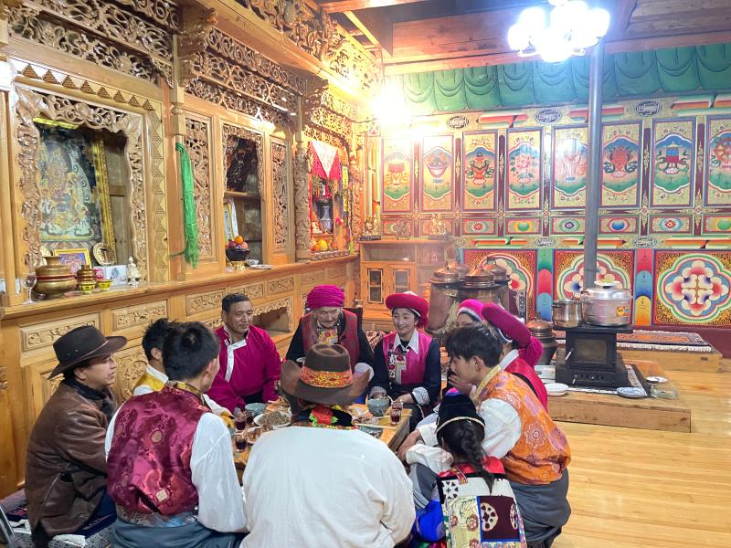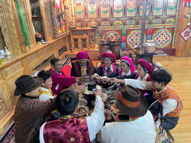 在濃厚的新年氛圍里,初稱心頭的幸福感滿滿:“這幾年,在黨的好政策指引下,我們的日子真的越來越好了,去年家里經(jīng)營的房車營地賺了4萬多元,女兒在外打工,兩個(gè)孫子都在讀大學(xué),老母親身體健康,生活不用發(fā)愁……話語間,生活過得越來越滋潤的一家人舉起酒杯,“干杯,羅薩扎西德勒!(意為新年吉祥如意)”酒杯碰在一起,發(fā)出清脆的響聲,大家喜慶洋洋的在一起慶新年,說祝福,祈愿來年日子越來越紅火……