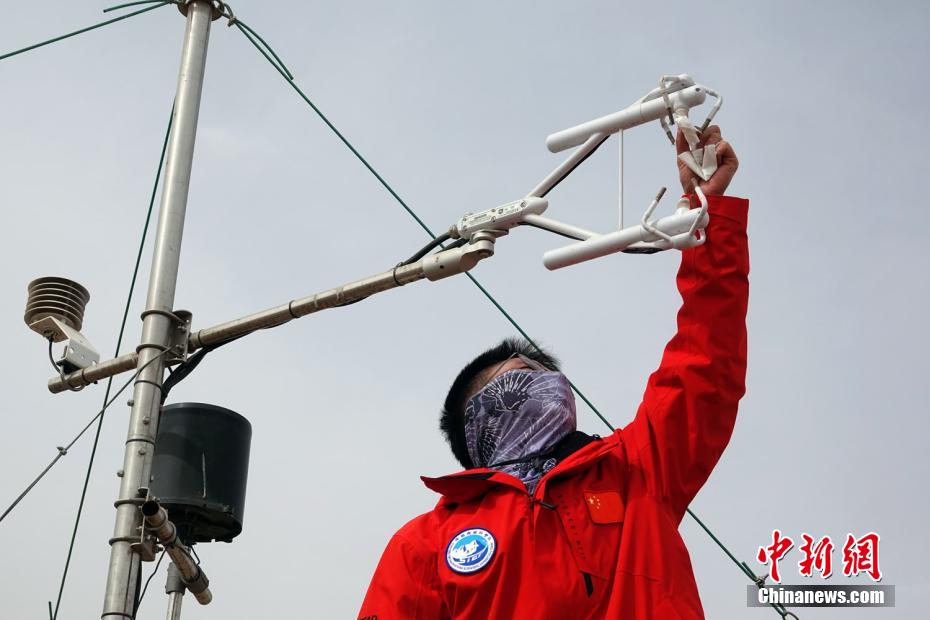 圖為第二次青藏科考隊(duì)員、中科院空天院博士生周丁旺在觀測(cè)站開(kāi)展科研設(shè)備維護(hù)工作。孫自法 攝