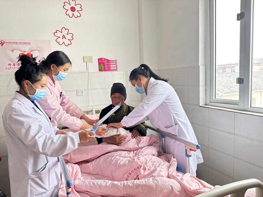 “母乳喂養(yǎng)要保持正確姿勢(shì),防止嬰兒?jiǎn)苣??!痹挟a(chǎn)保健醫(yī)生格絨拉姆在巡房時(shí),給產(chǎn)婦們普及正確的育兒知識(shí)并告知產(chǎn)后康復(fù)的重要性。